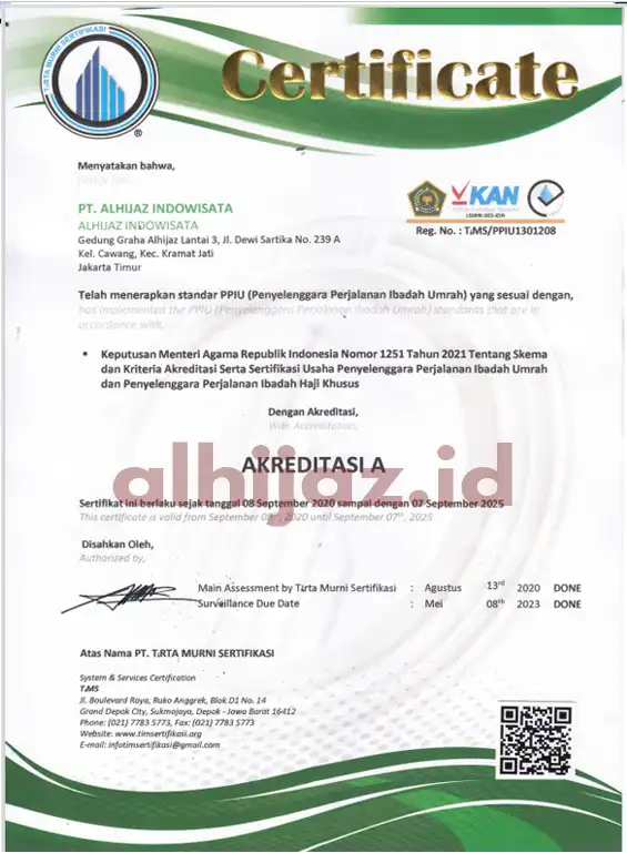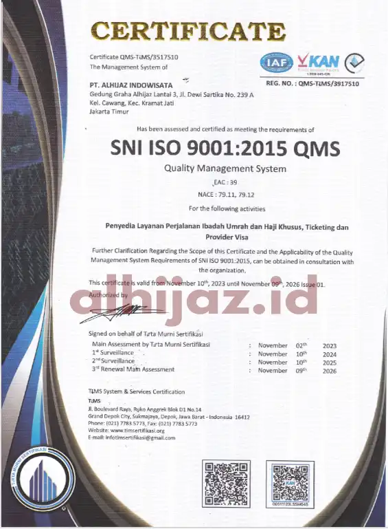 Alhamdulillah.. selama prjalanan dari Indonesia ke madinah dan makkah pelayanannya sangat memuaskan dr Alhijaz jg para muthawifnya sangat ramah. Jgn ragu memilih Alhijaz Travel sbg agen prjalanan ibadah umroh dan haji plus yg trpercaya. Insyaa Allah amanah..❤️